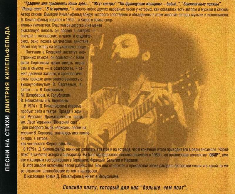 (...)В этот альбом включены песни разных лет. Все они относятся к прекрасной эпохе расцвета авторской песни и в какой-то мере отражают разнообразие ее тем и интересов.(...)